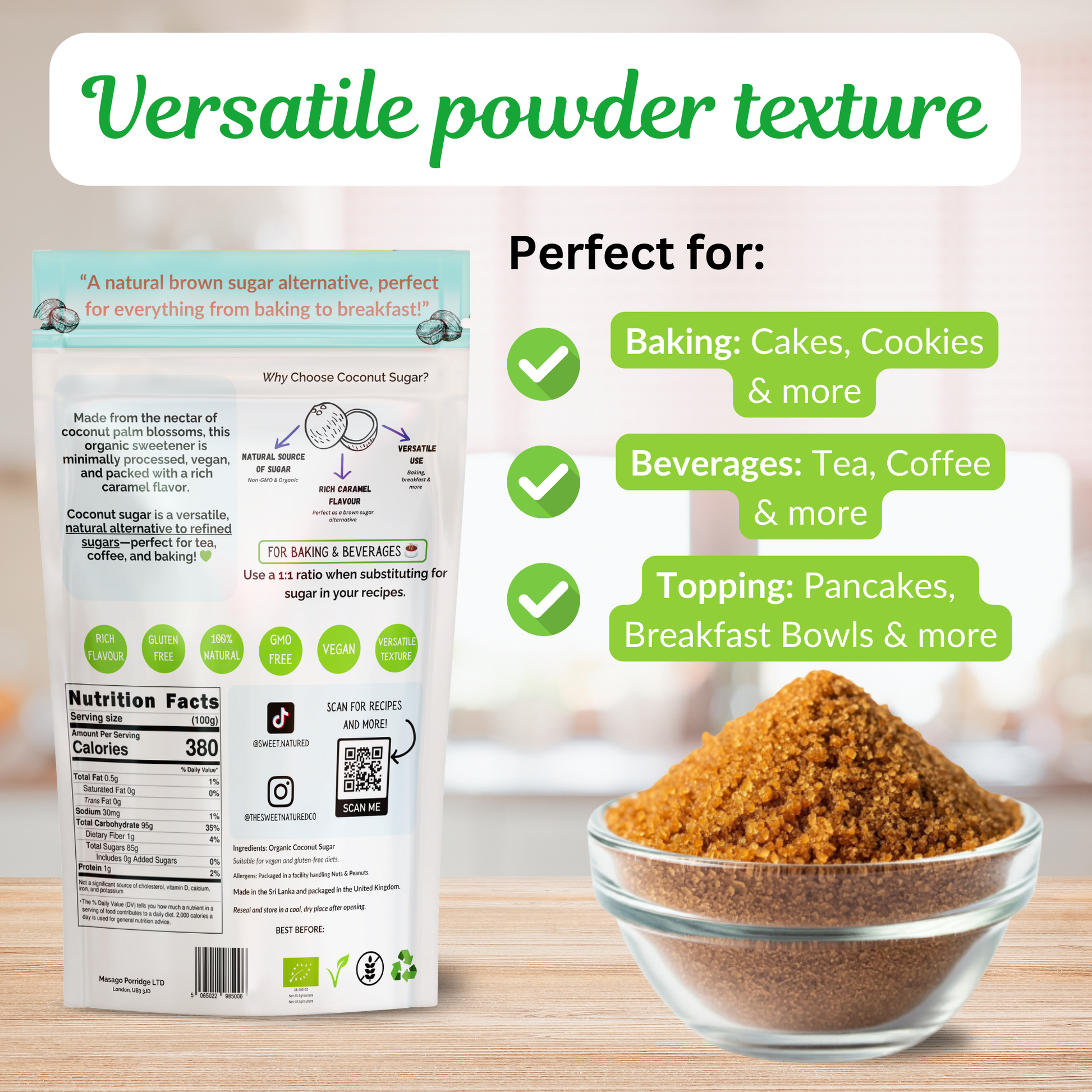 π° Versatile Sweetness: Ideal for baking, sprinkling on porridge, sweetening beverages, or adding to sauces and desserts.